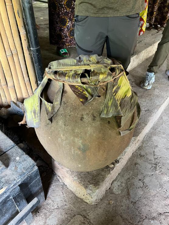 - Fermentation: Ground sorghum flour is sprinkled over the diluted banana juice in a large clay pot. The pot is then covered with banana leaves to create airtight conditions.